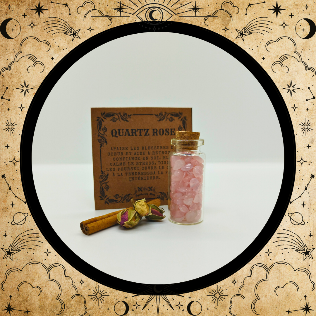 - Quartz Rose : Apaisement, douceur, compassion, confiance, amour, tendresse.