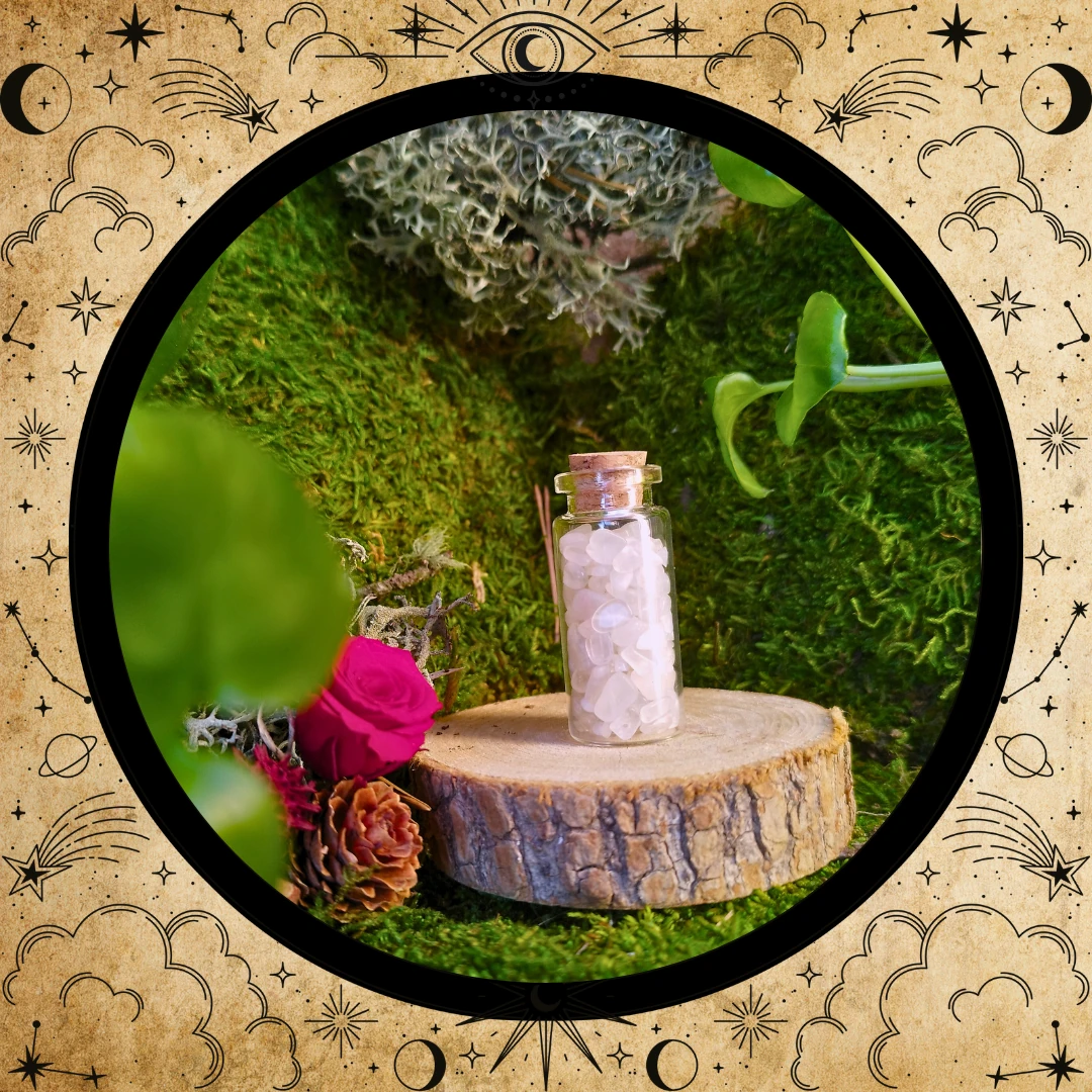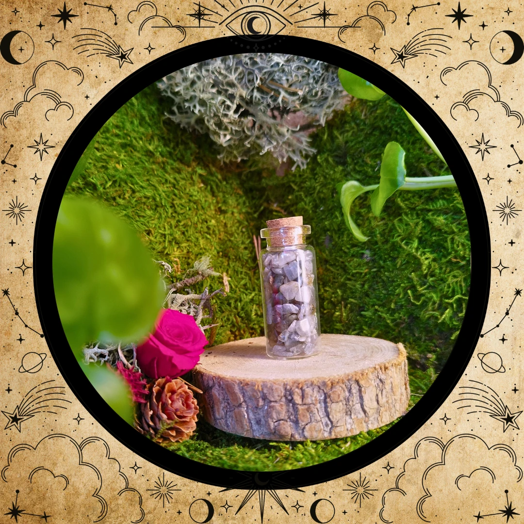 Les Stones Jars s’inscrivent dans cette tradition ancienne : celle de garder près de soi une part de la Terre, un éclat de minéral chargé d’intention. Aujourd’hui encore, ces petites fioles deviennent des alliées de rituels, des objets de méditation ou de simples trésors à contempler : un pont entre le monde tangible et le subtil.